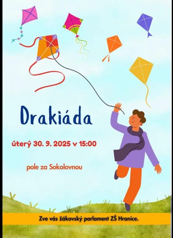 Žákovský parlament ZŠ Hranice zve na Drakiádu, která se pořádá v úterý 30. září od 15 h. na poli za Sokolovnou.