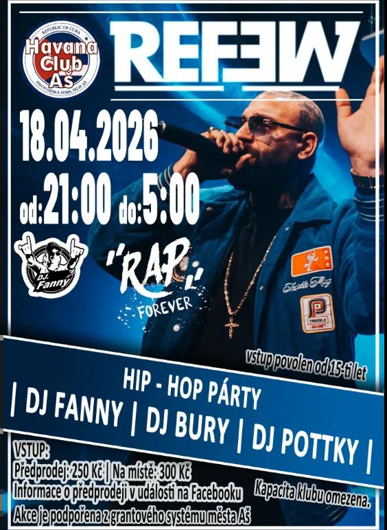 This won't be just another ordinary Saturday. This will be a night that Aš (and the surrounding area) won't soon forget! One of the most prominent faces of the Czech rap scene is heading to the Havana club – REFEW!