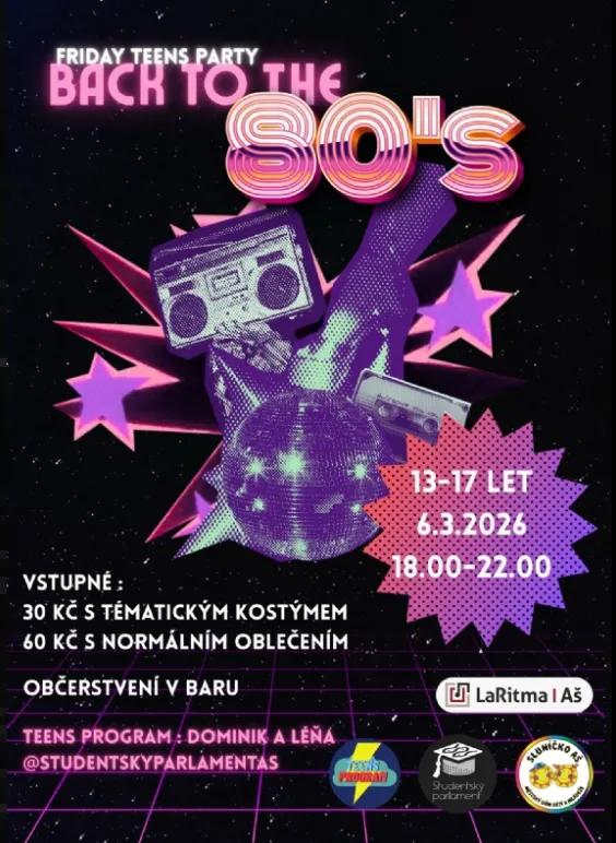 Studentský parlament Aš ve spolupráci s mentory opět chystá oblíbenou Teens party a tentokrát se vracíme zpátky do 80. let!