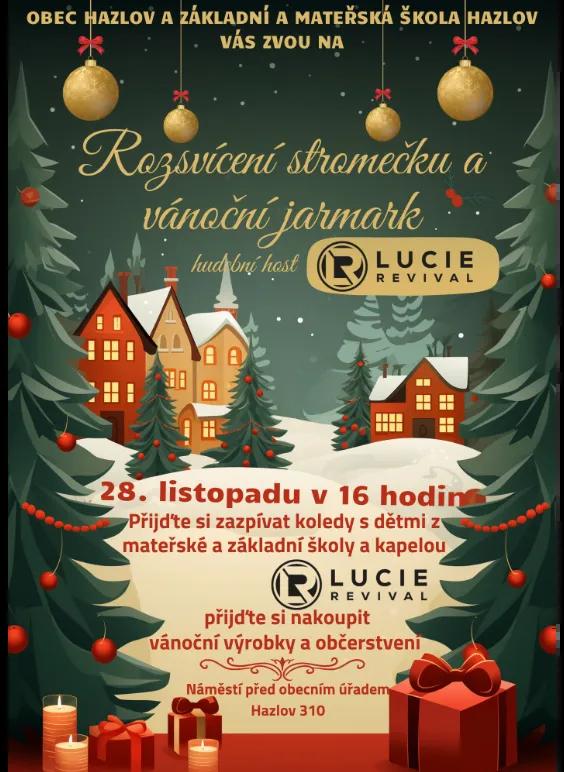Obec Hazlov spolu se Základní a Mateřskou školou Hazlov vás srdečně zvou na Rozsvícení stromečku a vánoční jarmark, který se uskuteční 28. listopadu od 16 hodin na náměstí před obecním úřadem v Hazlově (Hazlov 310).