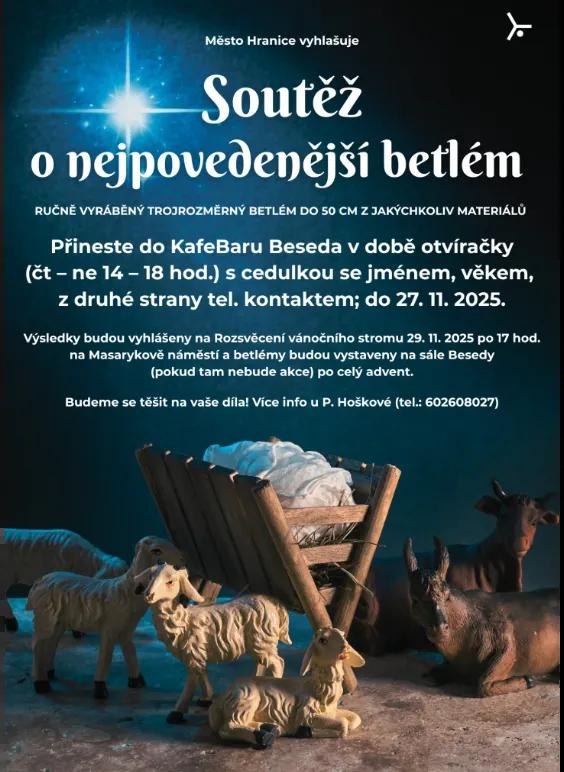 Výsledky soutěže budou vyhlášeny při rozsvěcení vánočního stromu dne 29. 11. 2025 po 17 hodině na Masarykově náměstí. Betlémy budou následně vystaveny na sále Besedy (pokud se zde nebude konat jiná akce) po celý advent.