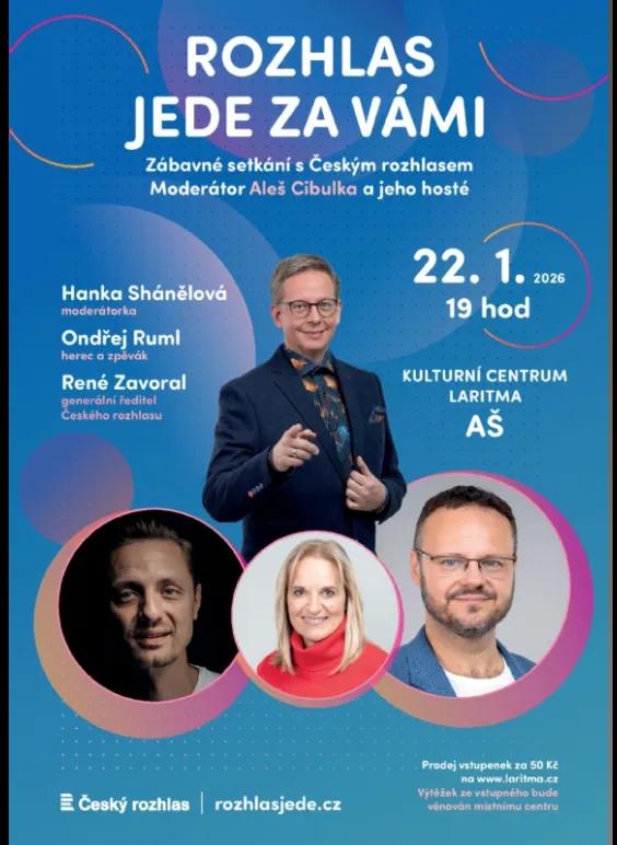 Moderátor Aleš Cibulka přiveze hosty Hanku Shánělovou, Ondřeje Rumla a Reného Zavorala, generálního ředitele Českého rozhlasu.